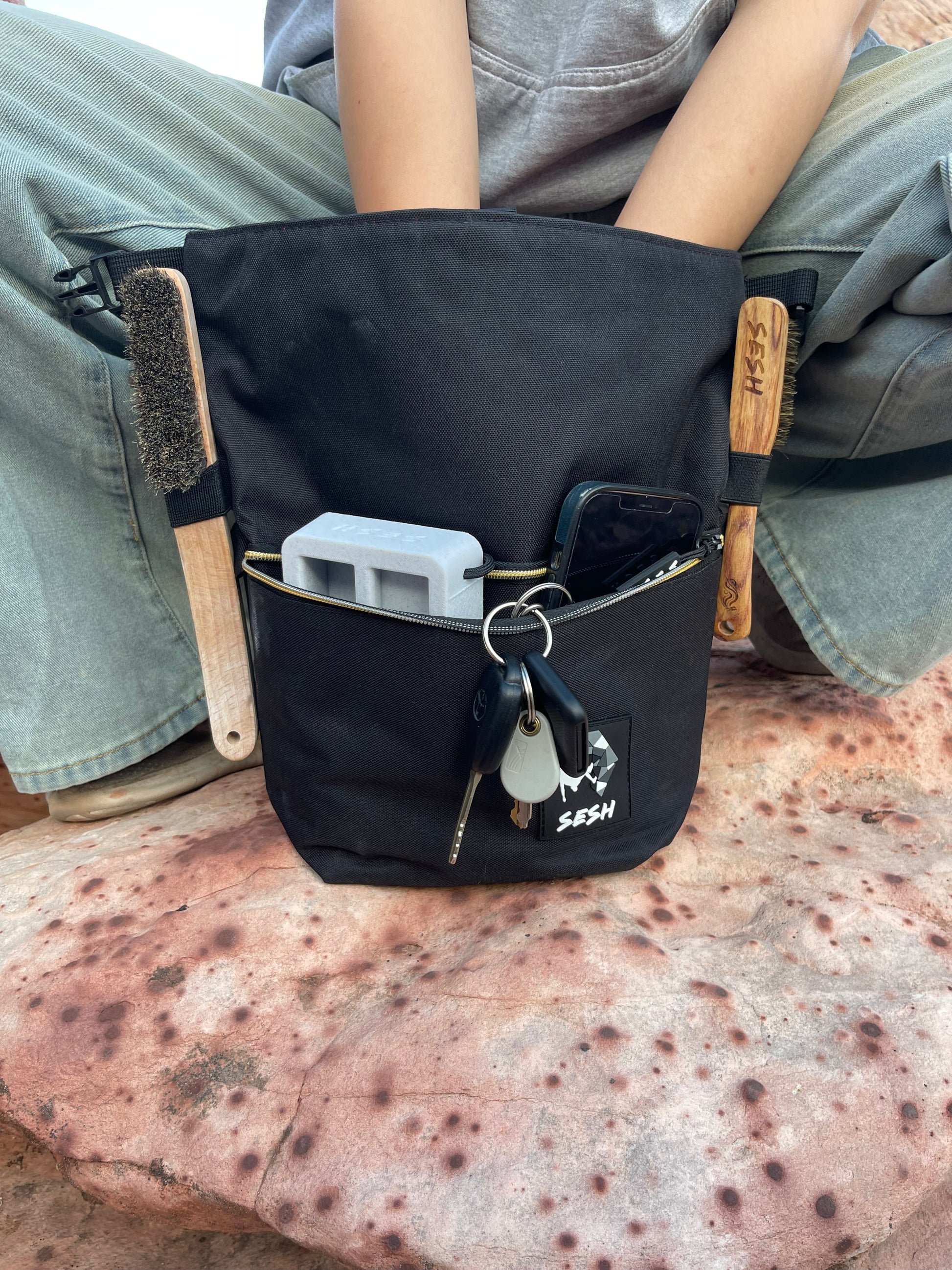 - Elastic Brush Holders: The two external elastic brush slots make it convenient to carry and access your climbing brushes.