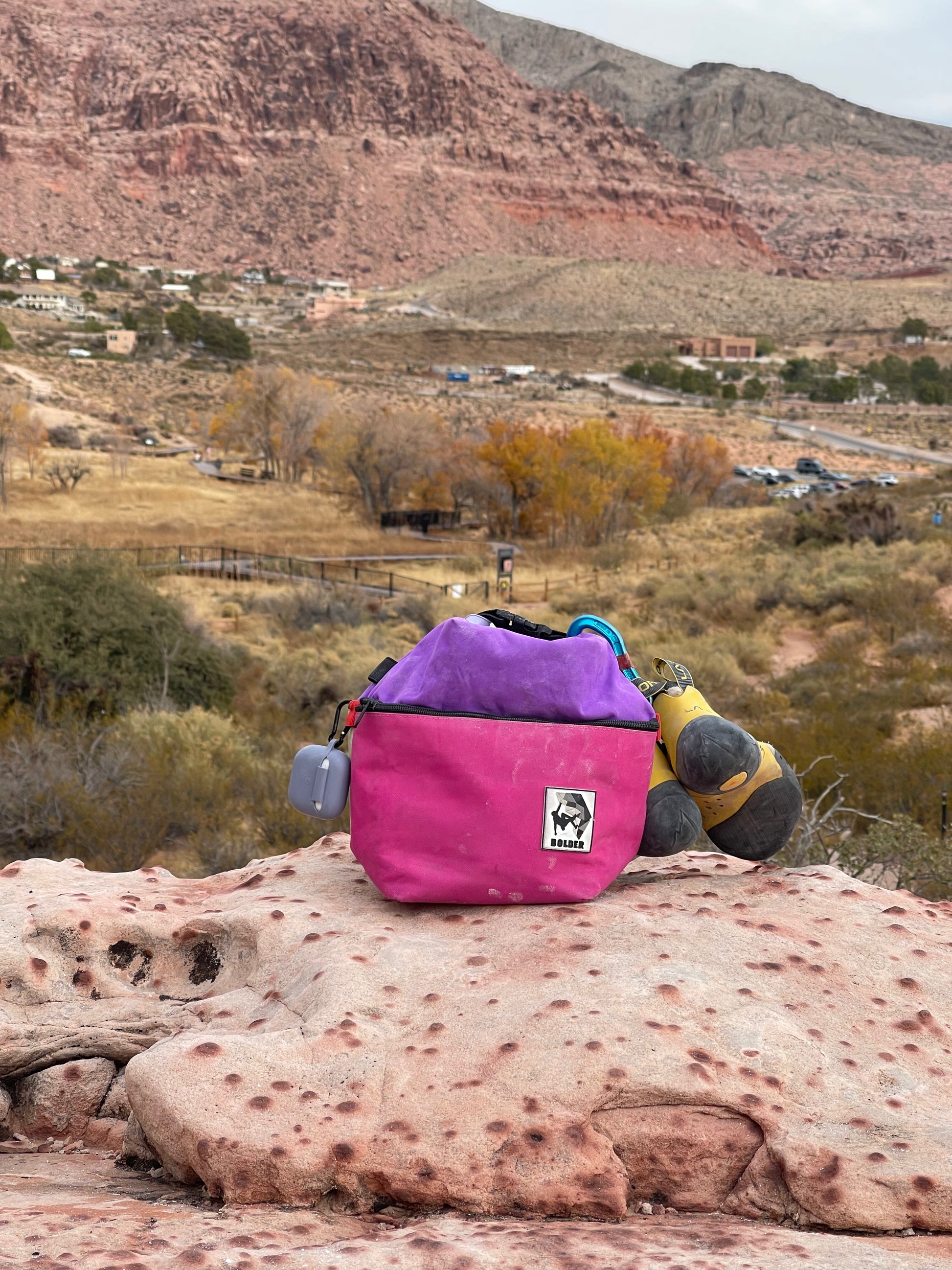 - Durable Material: Made of high-quality PVC-coated polyester; this bag is water-resistant, tear-resistant, and fray-resistant, ensuring it can withstand the toughest climbing conditions. The square base prevents tipping and keeps your chalk inside your bag.