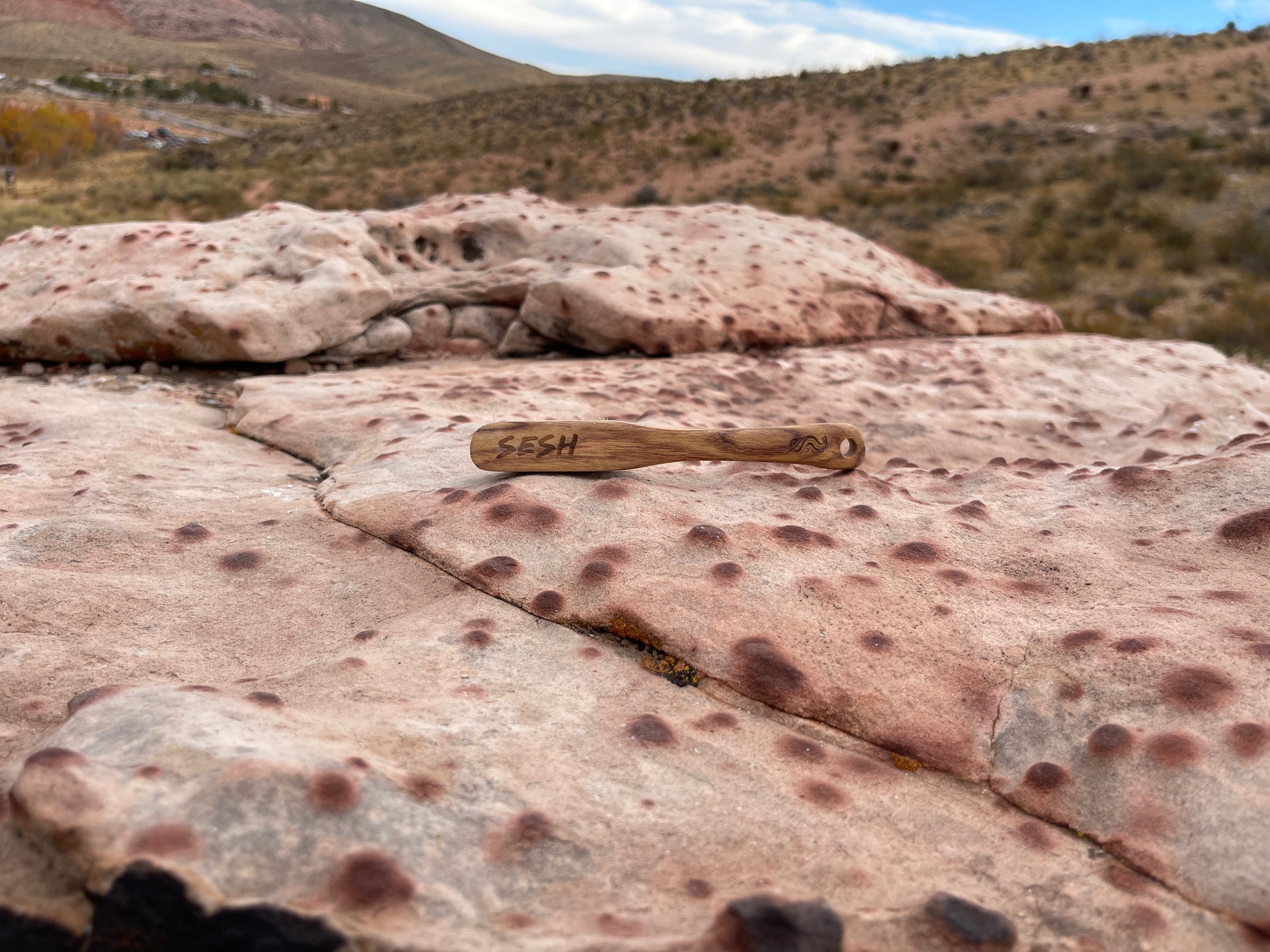 Achieve superior chalk removal while preserving the texture of the rock with our premium high-density boar hair bristles. Crafted with a soft rosewood body to ensure comfort and protect your hands, this brush features an ergonomic curved handle and a striking lasered design for a unique aesthetic. Size is 6.5inx1inx0.5in